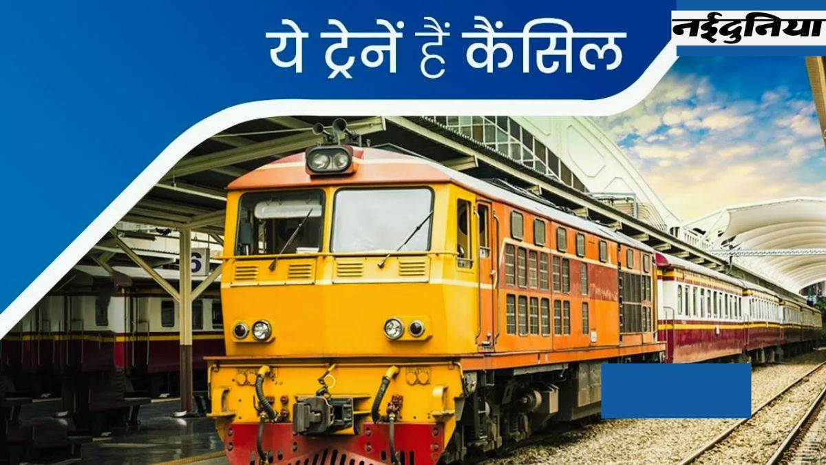नीचे दी गई ट्रेन संख्या से जानिए कौन-कौन सी ट्रेनें रद्द की गई हैं: 01606 , 01607 , 01608 , 01609 , 01610 , 01625 , 01626 , 01811 , 01812 , 01820 , 01823 , 01824 , 03085 , 03086 , 03591 , 03592 , 04029 , 04030 , 04041 , 04042 , 04148 , 04149 , 04203 , 04204 , 04319 , 04320 , 04335 , 04336 , 04379 , 04380 , 04383 , 04384 , 04403 , 04404 , 04408 , 04421 , 04424 , 04549 , 04550 , 04568 , 04577 , 04601 , 04602 , 04647 , 04901 , 04902 , 04909 , 04910 , 04912 , 04913 , 04916 , 04919 , 04927 , 04938 , 04941 , 04946 , 04950 , 04953 , 04958 , 04959 , 04961 , 04963 , 04964 , 04974 , 04975 , 04977 , 04978 , 04987 , 04988 , 04999 , 05000 , 05035 , 05036 , 05039 , 05040 , 05091 , 05092 , 05093 , 05094 , 05155 , 05156 , 05334 , 05427 , 05428 , 05459 , 05460 , 05470 , 05471 , 05517 , 05518 , 05591 , 05592 , 05749 , 05750 , 05751 , 05752 , 06802 , 06803 , 06921 , 06922 , 06923 , 06924 , 06925 , 06926 , 06934 , 06937 , 06958 , 06959 , 06964 , 06967 , 06977 , 06980 , 06991 , 06994 , 06995 , 06996 , 07519 , 07520 , 07521 , 07522 , 07906 , 07907 , 08015 , 08016 , 08049 , 08050 , 08151 , 08152 , 08174 , 08195 , 08196 , 08697 , 08698 , 09108 , 09109 , 09110 , 09113 , 09369 , 09370 , 09476 , 09481 , 09491 , 09492 , 09604 , 10101 , 10102 , 11124 , 11603 , 11604 , 12041 , 12042 , 12172 , 12241 , 12242 , 12364 , 12368 , 12370 , 12505 , 12506 , 12562 , 12583 , 12584 , 12874 , 12987 , 13258 , 13309 , 13310 , 13343 , 13344 , 14005 , 14006 , 14213 , 14214 , 14217 , 14218 , 14230 , 14231 , 14232 , 14235 , 14236 , 14265 , 14266 , 14307 , 14308 , 14505 , 14506 , 14617 , 14618 , 14674 , 15081 , 15082 , 15083 , 15084 , 15127 , 15129 , 15130 , 15203 , 15204 , 15280 , 15622 , 15703 , 15704 , 15709 , 15710 , 15715 , 15722 , 15777 , 15778 , 15903 , 17309 , 17310 , 18019 , 18020 , 18104 , 18108 , 18601 , 18602 , 19405 , 19406 , 19614 , 20927 , 20928 , 20948 , 20949 , 22198 , 22441 , 22442 , 22959 , 22960 , 31411 , 31414 , 31423 , 31432 , 31711 , 31712 , 36011 , 36012 , 36031 , 36032 , 36033 , 36034 , 36035 , 36036 , 36037 , 36038 , 36071 , 36072 , 36827 , 36840 , 37305 , 37306 , 37307 , 37308 , 37319 , 37327 , 37330 , 37338 , 37343 , 37348 , 37411 , 37412 , 37415 , 37416 , 52965 , 52966