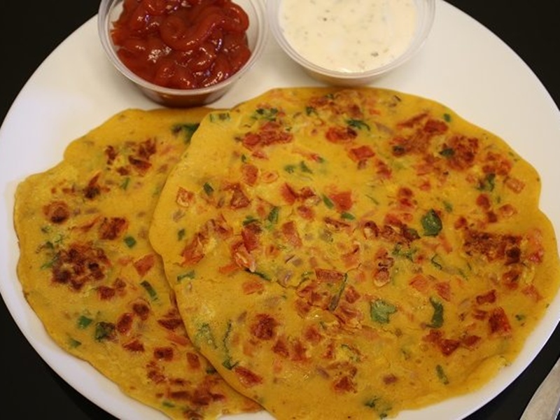इसी तरह बेसन से भी इसे बनाया जा सकता है लेकिन उसमें मूंग के आटे की बजाय आपको मैदा या आम आटा यूज करना होता है वो भी एक चम्मच. इसके अलावा एक चौथाई चम्मच बैकिंग पाउडर डालकर सारी चीजें इसी तरह मिक्स कर वेज ऑमलेट बनाया जा सकता है।