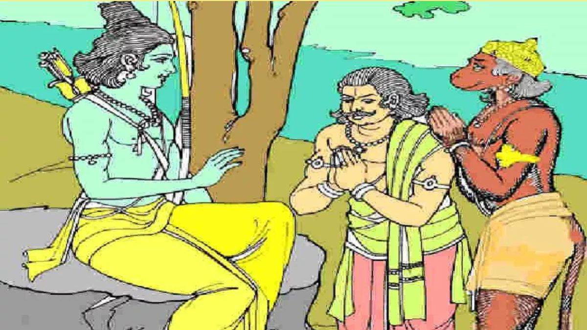 युद्ध में रावण मारा गया। उसका विशालकाय शरीर जमीन पर पड़ा था। भाई की मृत अवस्था में देखकर विभीषण फूट-फूट कर रोने लगा। उसे लगा कि भाई की मृत्यु का कारण वह है।