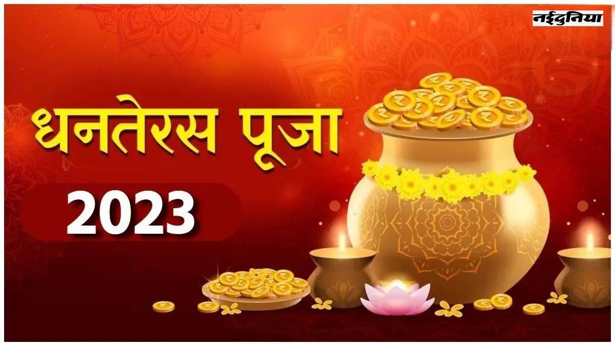 धर्म डेस्क, इंदौर। Dhanteras 2023: धनतेरस हर साल कार्तिक मास के कृष्ण पक्ष की त्रयोदशी तिथि को मनाया जाता है। शास्त्रों में निहित है कि कार्तिक मास के कृष्ण पक्ष की त्रयोदशी तिथि को समुद्र मंथन के दौरान भगवान धन्वंतरि हाथ में कलश लेकर प्रकट हुए थे। इस तिथि को धनतेरस के रूप में मनाया जाता है। इस साल धनतेरस 10 नवंबर को है। धार्मिक मान्यता है कि धनतेरस के दिन जहां भगवान धन्वंतरि की पूजा की जाती है, वहां आय और सौभाग्य में वृद्धि होती है। इससे आर्थिक समस्याएं भी खत्म होती हैं। अगर आप भगवान धन्वंतरि की कृपा पाना चाहते हैं, तो धनतेरस के दिन पूजा करते समय इस मंत्र और आरती का ध्यानपूर्वक जाप करें।
