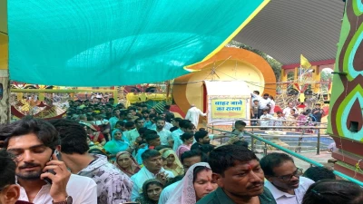 नईदुनिया न्यूज, नलखेड़ा। गुप्त नवरात्र के चलते सिद्धपीठ पीतांबरा मां बगलामुखी मंदिर पर शनिवार को श्रद्धालुओं का तांता लग रहा। शनिवार को लगभग दस हजार से अधिक श्रद्धालुओं ने माता मंदिर पर उपस्थिति दर्ज कराई है। इस दौरान भक्तें ने माता के स्वर्ण श्रृंगार के दर्शन किए। प्रात:काल से ही भक्तों की लंबी कतार लगना प्रारम्भ हो गई थी। मंदिर के बाहर भक्तों की भीड़ को नियंत्रित करने के लिए लगे बेरिकेड्स भरे हुए थे। उसके बाद भी दर्शनार्थी की लाइन हनुमान मंदिर तक पहुंच गई थी। शनिवार और रविवार अवकाश का दिन होने के कारण इतनी बड़ी संख्या में भक्तों के आगमन और वाहनों के कारण माता मंदिर मार्ग पर जाम लग गया।