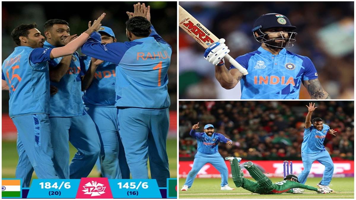 India vs Bangladesh T20 WC 2022 Highlights: भारत और बांग्लादेश के बीच चल रहे टी20 वर्ल्ड कप 2022 के 35वां मुकाबले में भारत ने 5 रनों से जीत दर्ज की है। इस जीत के साथ जीत के साथ भारत 6 अंकों के साथ ग्रुप 2 में शीर्ष पर पहंच गया है। साथ ही उसके सेमीफाइनल में पहुंचने का रास्ता भी साफ हो गया है। पहले बल्लेबाजी करते हुए भारत ने बांग्लादेश के सामने जीत के लिए 185 रनों का लक्ष्य रखा। बांंग्ला देश ने अच्छी शुरुआत की, लेकिन 7 ओवरों के बाद बारिश शुरु हो गई। बारिश रुकी तो मैच को 16 ओवरों का कर दिया गया और डकवर्थ लुईस नियम के तहत 151 रनों का नया लक्ष्य तय किया गया। फिर से बल्लेबाजी करने उतरी बांग्ला देश की टीम 16 ओवरों में 6 विकेट के नुकसान पर 145 रन ही बना सकी।