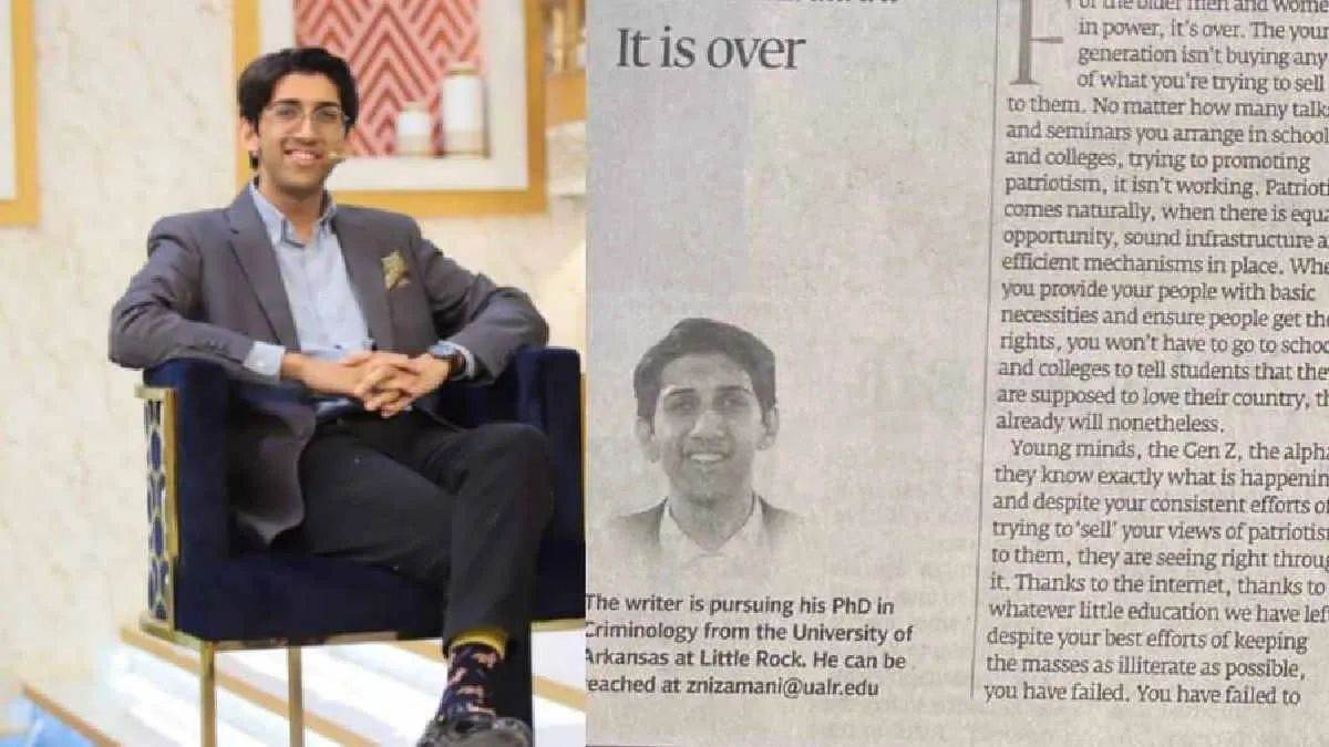 डिजिटल डेस्क। पाकिस्तान में इस समय एक लेख को लेकर 'जेन-जी' (Gen-Z) का गुस्सा उबाल पर है। अमेरिका में पीएचडी कर रहे पाकिस्तानी छात्र जोरैन निजामानी द्वारा लिखा गया लेख, जिसका शीर्षक 'सबकुछ खत्म हुआ' था। बाद में सेना के दबाव की वजह से इसे हटा दिया गया। इस घटना ने पाकिस्तान की युवा पीढ़ी और सत्ता के बीच की गहरी खाई को उजागर कर दिया है।